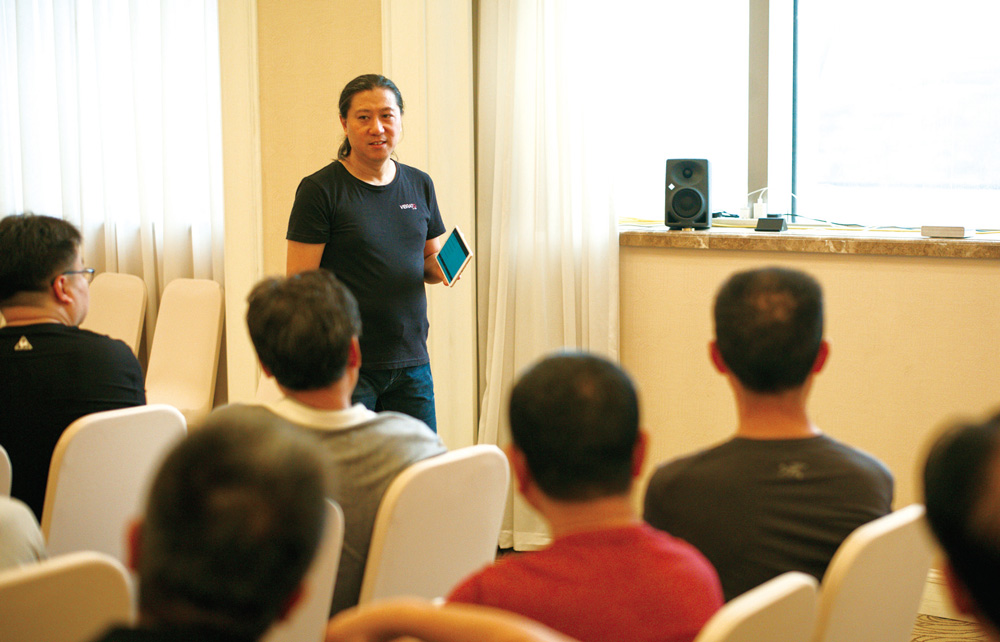 下午的演示活动分别由《新音响》总编赖英智、家电论坛版主吴彤主持音乐欣赏交流会。赖英智总编挑选了十首不同版本的现场录音,请在到场的烧友们试听过后,选出自己认为“正确的音乐“。吴彤版主除了分享发烧厂家Accuphuse 和Wilson Audio 的DSD 音乐外,还启发大家的深度思考,他带来的问题是:“音乐什么时候最好听?”