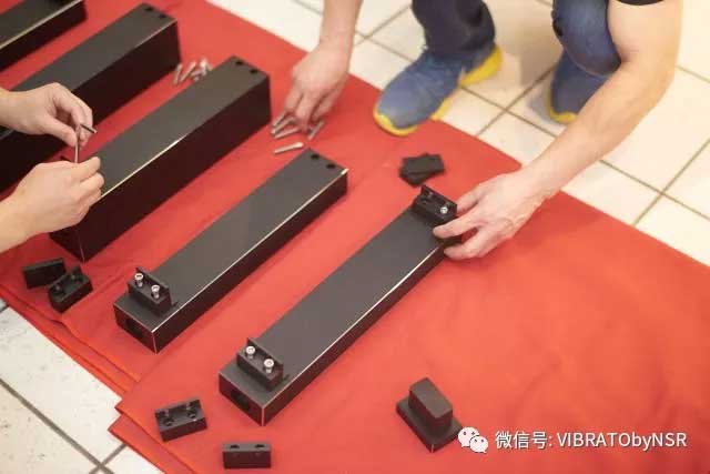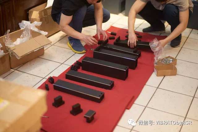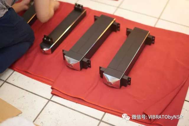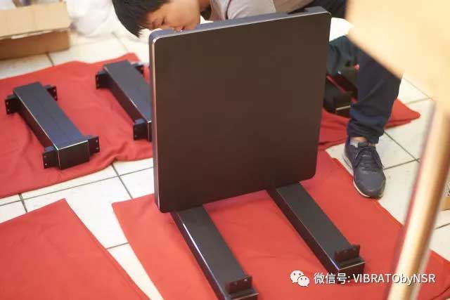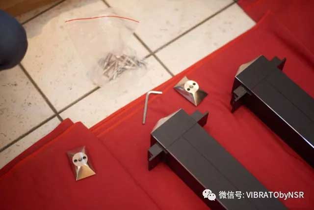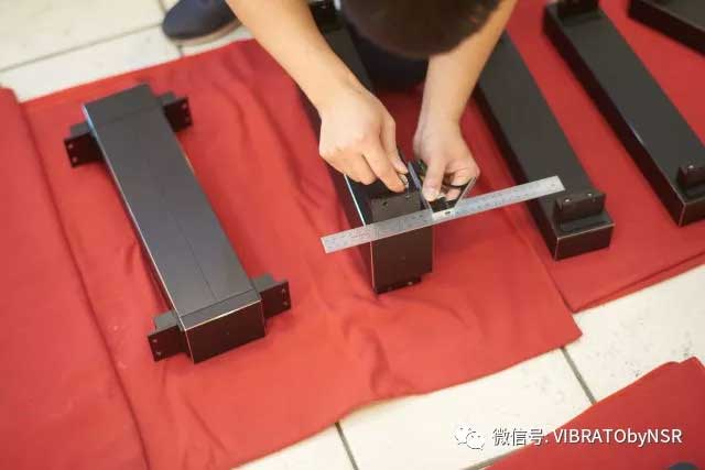 在直角尺帮助下,按指定程序拧紧支撑件,以保证层板间的间隙在设计的公差范围内。NSR AUDIO层板之间的公差范围是正负0.02mm!完全可以忽略不计。