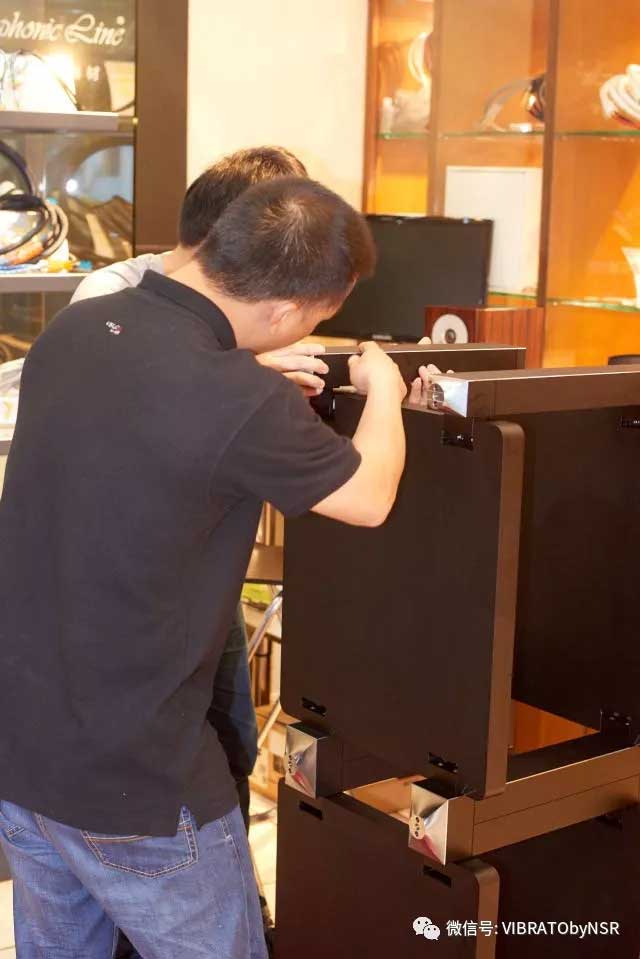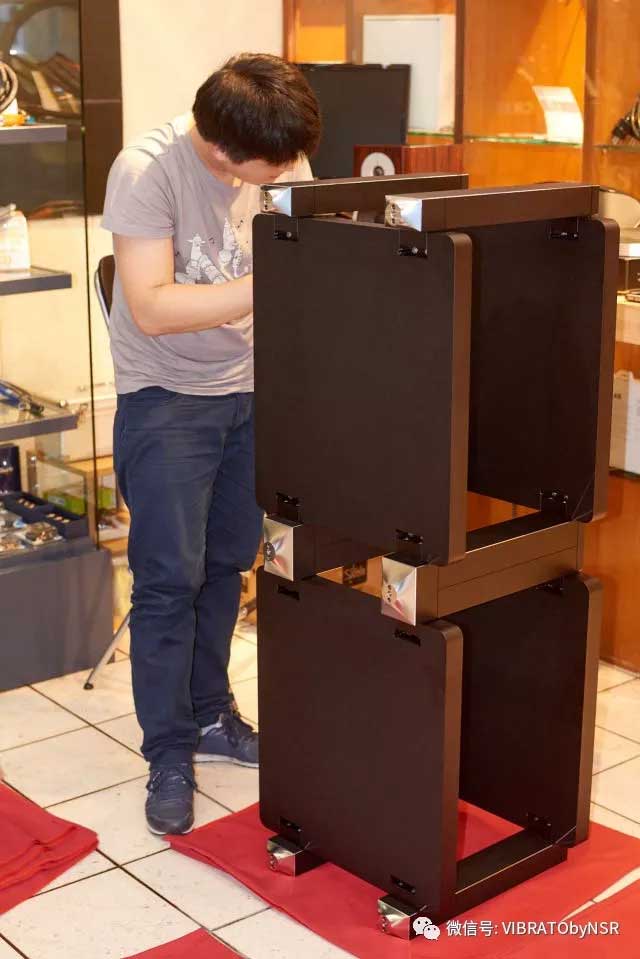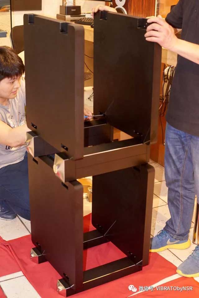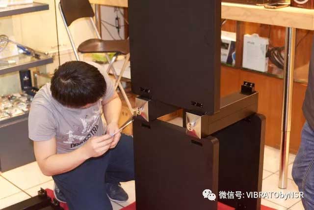 最后的工序是调整好整座音响架的水平,一座安装好了2连体2层参考级NSR AUDIO音响架就此完成。
