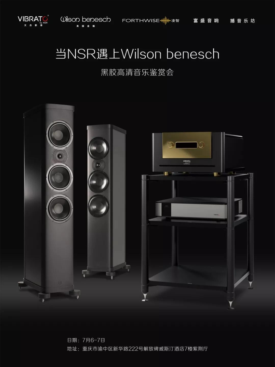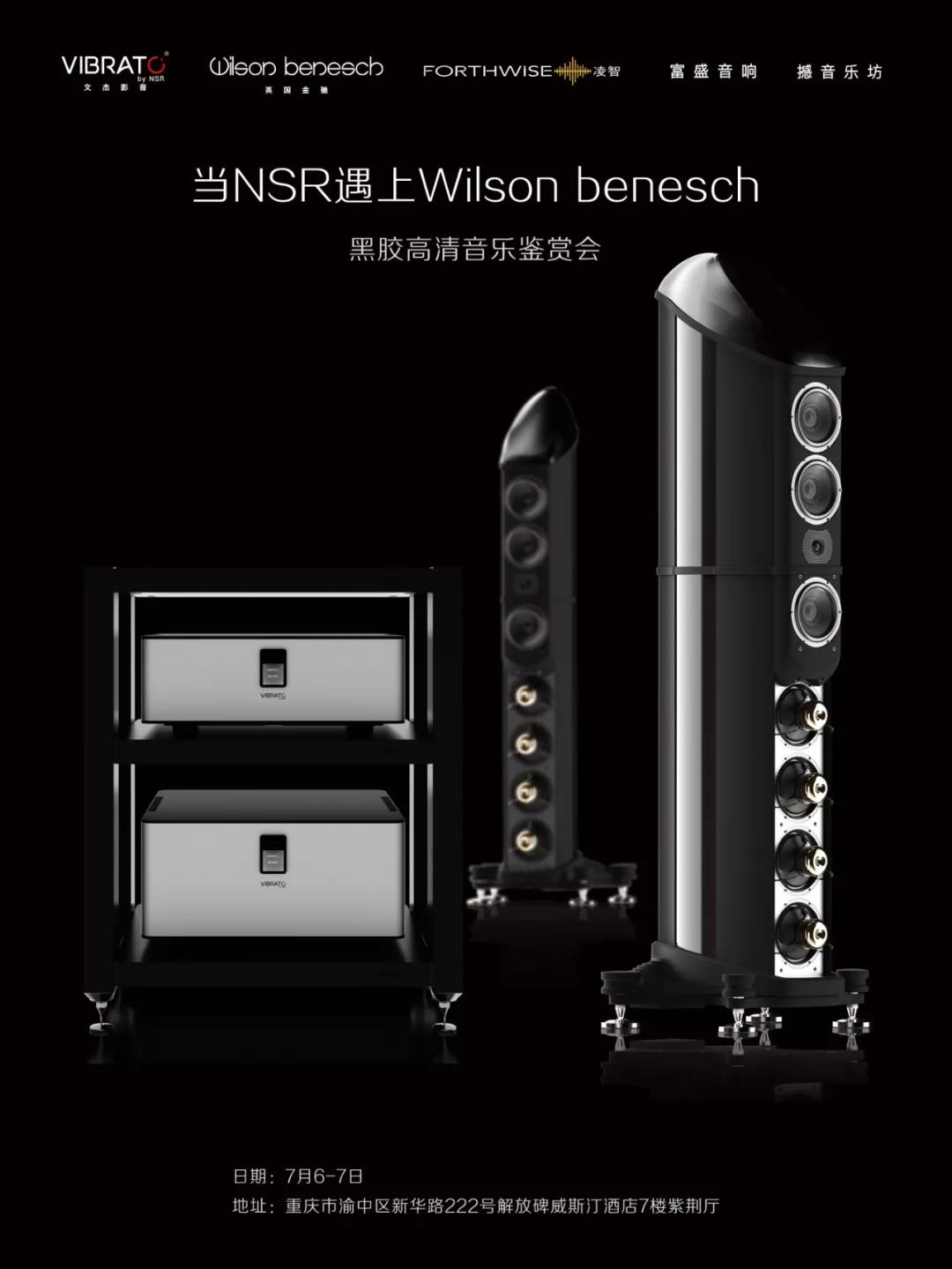 本次活动我们来到重庆,为音乐发烧友再次带来听觉盛宴!由Vibrato 文杰影音、香港凌智音响、富盛音响举办高级音响器材欣赏会:“当NSR遇上Wlison benesch——黑胶高清音乐鉴赏会 ”将于7月6-7日又与大家见面。 |