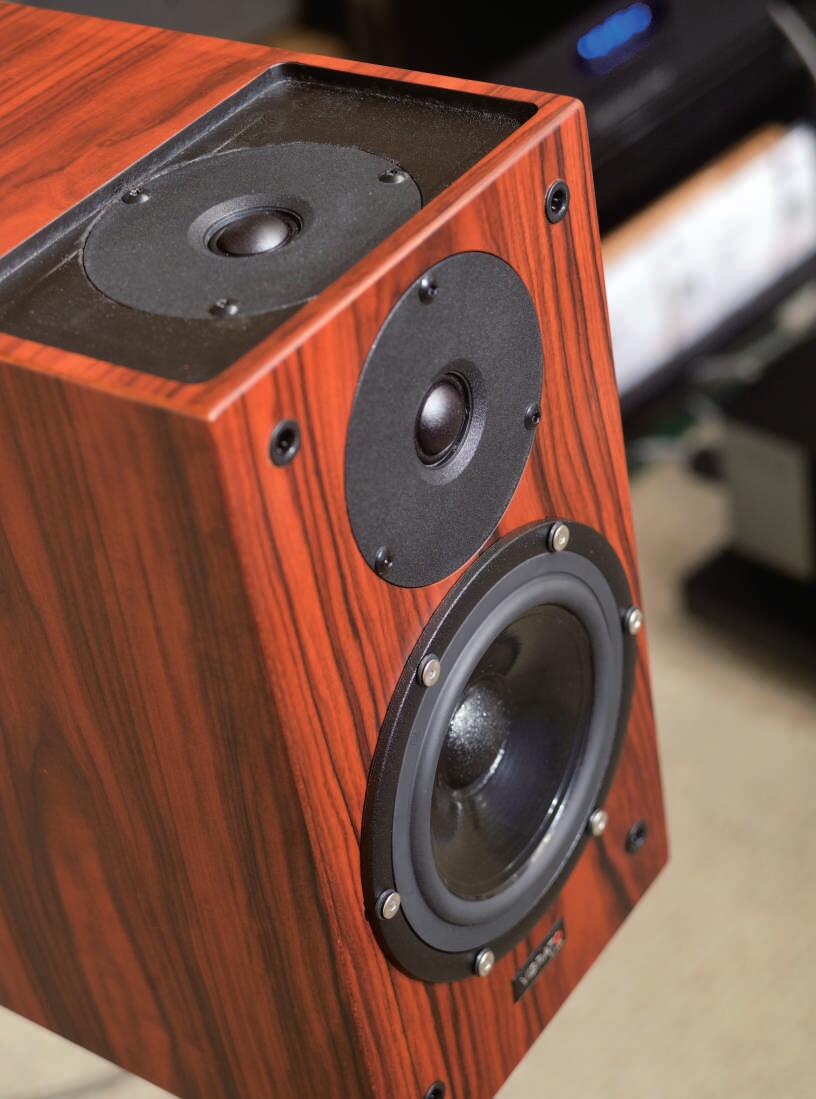 ◎顶置式高音单元:SWING顶部多了只高音单元,而且是朝向上方的,为什么呢?其实NSR的设计师发现在音箱顶部加了这个超高音单元之后,声场得到拓展,高音的泛音更加丰富,这是这对书架箱的特色之一。实际试听中,可以感到声场的高度比一般音箱表现得更好,高频更柔顺,空气感更佳。